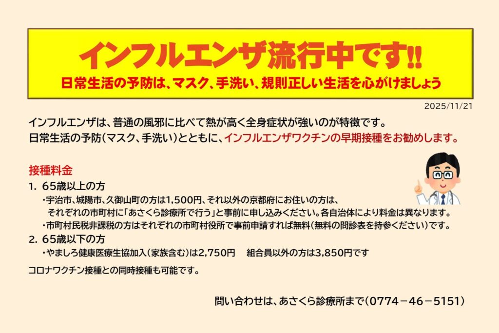 | 医科診療所 | あさくら診療所 | 611-0033 | 宇治市大久保町山ノ内19-1 | 0774-46-5151 | 0774-46-5207 |