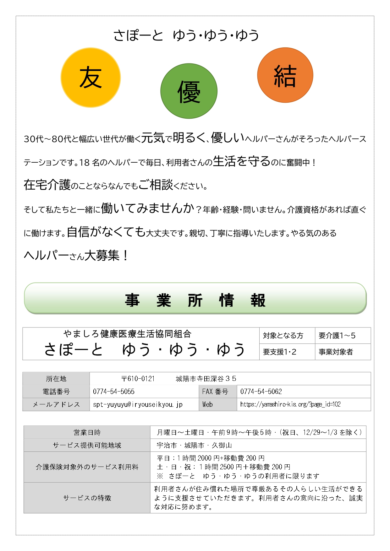 高齢者・身体障害者のお世話、お話し相手、付き添い、車いすでの外出介助、代筆、代行、家事全般(買い物・食事作り・掃除・洗濯など) - 対象 城陽市・宇治市・久御山町