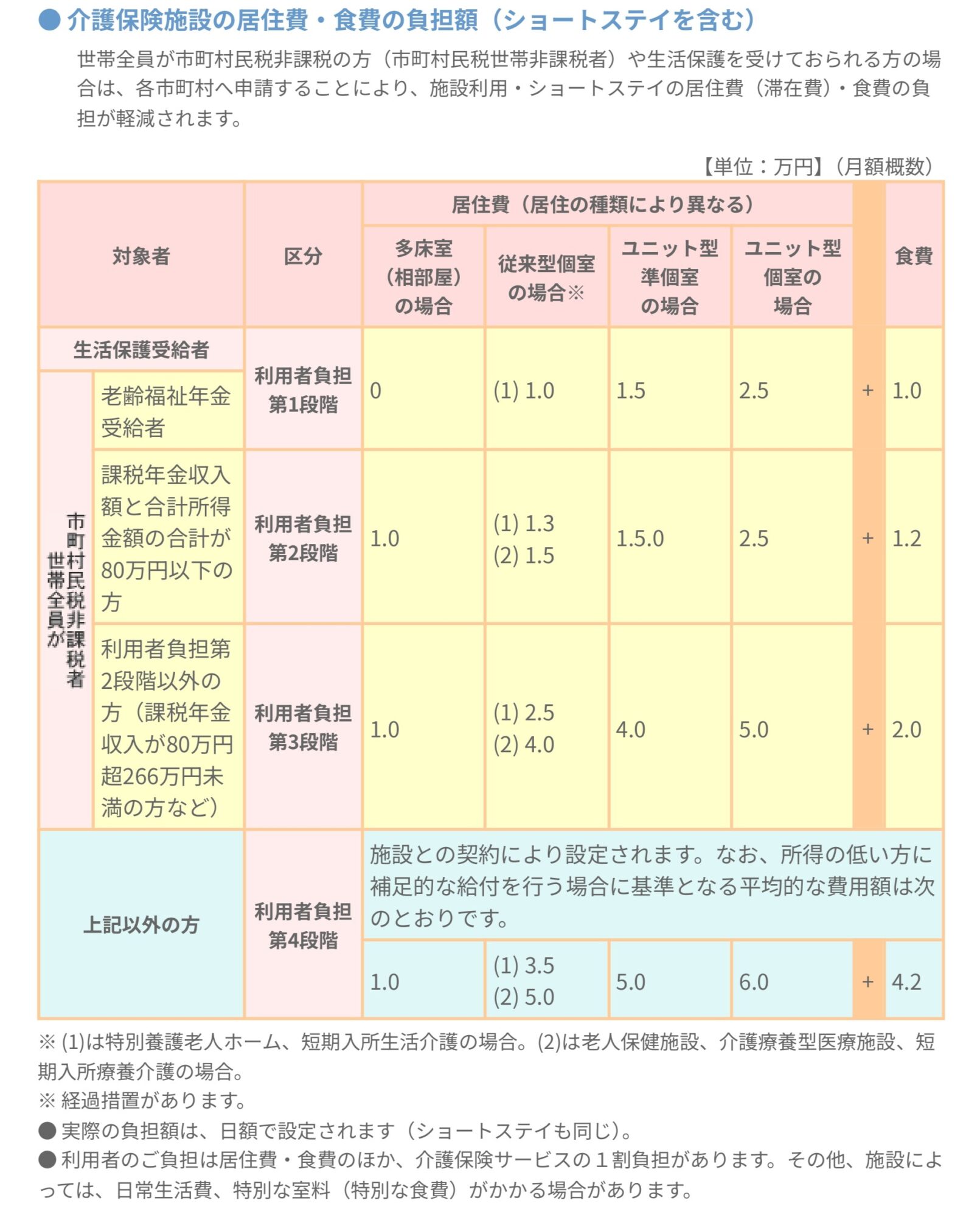 介護保険施設の居住費・食費の負担額(ショートステイを含む)