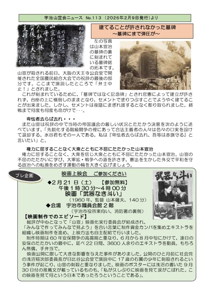 | 2026-2-17 | 山宣墓前祭(3/5)案内他を掲載しました new |