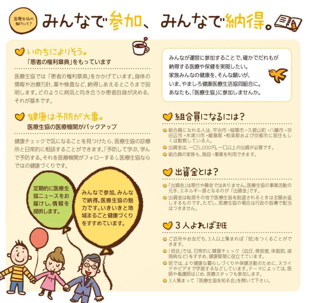 組合員になれる人は、宇治市・城陽市・久御山町・八幡市・京田辺市・木津川市・綴喜郡・相楽郡および京都市に居住もしくは勤務している人。