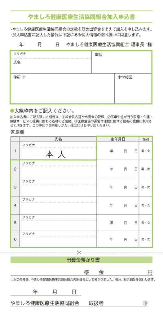 一口5,000円。一口以上の出資が必要です。 出資口数の減少、脱退による払い戻しは、定款にもとづいておこないます。